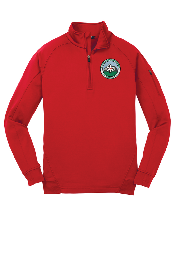 Cool, dry and colorfast, this moisture-wicking quarter-zip pullover has a snag-resistant face with a matte finish and brushed backing for comfort. It features double-knit construction, as well as a zippered pocket on the left sleeve and a chin guard.
