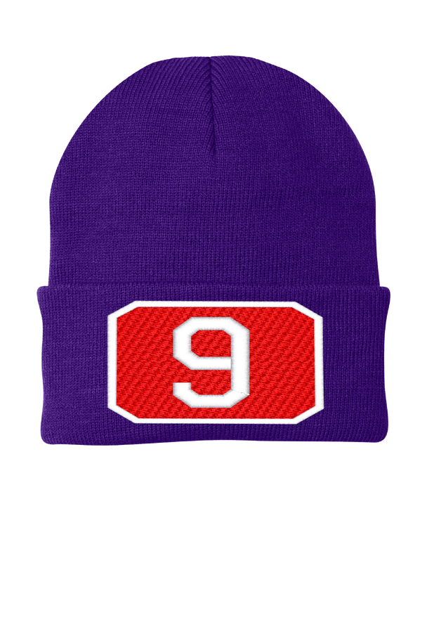 Back of Beanie (F. LAST, All CAPS- white thread)